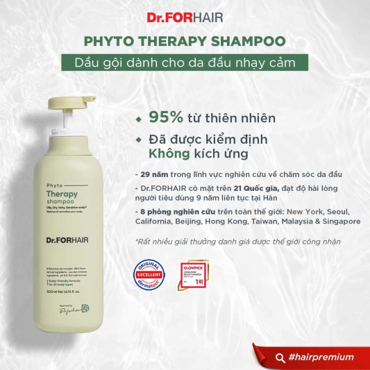 Bộ gội xả dưỡng cho da đầu nhạy cảm Dr.FORHAIR PHYTO THERAPY SHAMPOO x PHYTO THERAPY TREATMENT