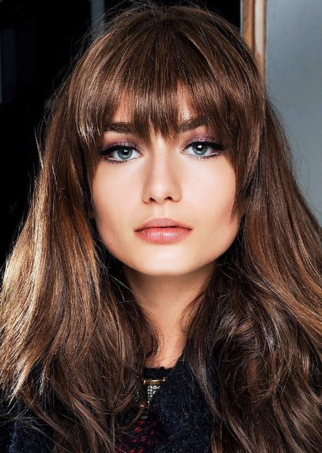 Tóc mái bằng có công dụng che đi phần trán, tạo cho khuôn mặt trở nên bầu bĩnh. Những nét vuông vóc trên khuôn mặt sẽ được áp chế rất nhiều nhờ kiểu tóc này.