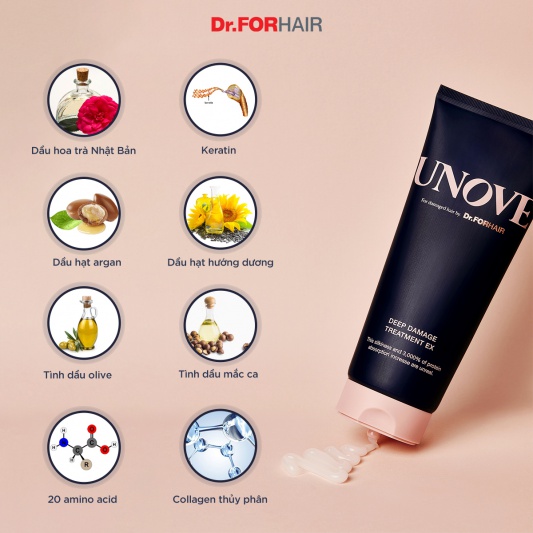 Kem xả hỗ trợ tóc hư tổn nặng UNOVE DEEP DAMAGE TREATMENT EX 40ml - 207ml
